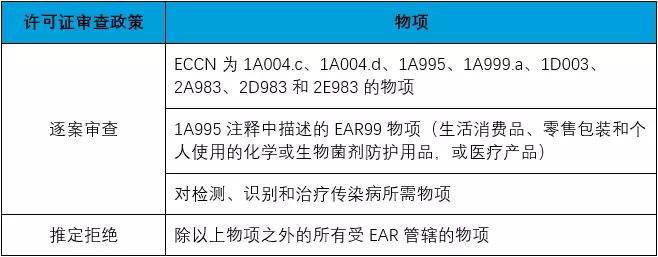 (1)對(duì)受美國(guó)《出口管制條例》(EAR)管控的所有物項(xiàng)施加許可要求;(2)對(duì)受EAR管控的所有物項(xiàng)采取推定拒絕的許可審查政策。