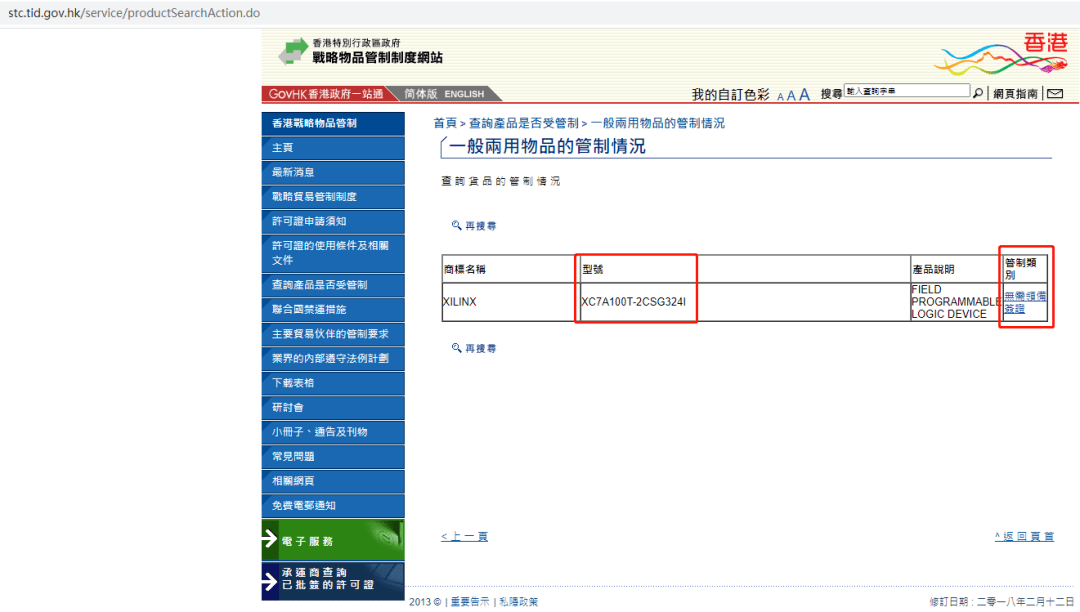 1.香港工業(yè)貿(mào)易署官網(wǎng),“首頁(yè) > 查詢產(chǎn)品是否受管制 > 一般兩用物品的管制情況”下查詢。