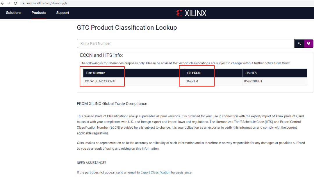 2. 賽靈思(Xilinx)官網(wǎng),ECCN查詢頁(yè)。